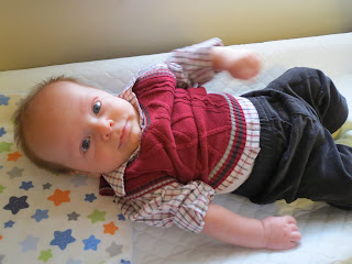 I started to not feel well. I had the thought that the Epidural was going up my spine. I expressed concern to the anesthesiologist who finally grabbed my face and said, "Your O2 is 100%! It cant get any better than that!" Soon after cutting into me I heard them say they could see him. The Doctors did one final big push on my stomach and I could just about feel him pop out. I heard the nurse mention the umbilical cord. (they later explained that it was wrapped twice around his neck tight!) I heard his cry for the first time. That will always be the most beautiful thing I've ever heard. The doctor held him up for me to see. Caleb said, "he looks like you!" (That's the last time caleb has said that...ha ha) Caleb asked if he could go with him to check him out and clean him up. I said OF COURSE! Caleb left and I just sobbed. I didn't feel right. I was dozing off throughout the whole thing. I knew I was extremely exhausted. I had been in labor for 37 hours!